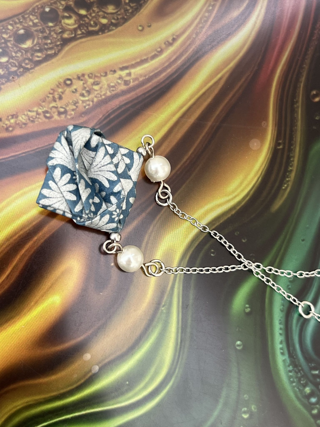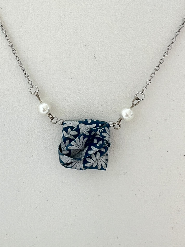 Collier Origami Halona Chanceux Bleu et Argenté